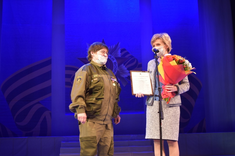 Глава города передала руководителю отряда Надежде Бахаревой благодарность за большой вклад в организацию поисково-разведывательных работ, которые проводились на территориях Новгородской, Ленинградской и Вологодской областей.