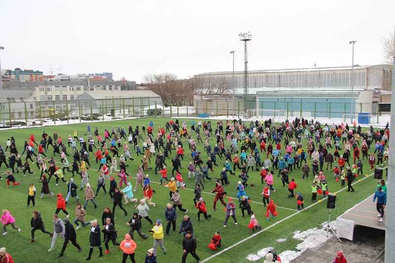 700 череповчан приняли участие в массовой зарядке на стадионе «Металлург»