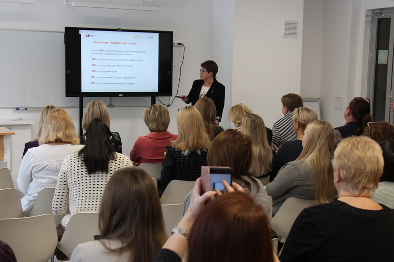 Также одним из участников стала Альбина Мехова, заведующий кафедрой социологии и социальных технологий. По ее словам, в проведенном соцопросе «Жизненные стратегии и социальные ориентиры одаренных детей Череповца» выявлено, что мнение школьников о Череповце сформировано их родителями и преподавателями.