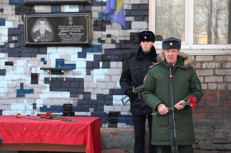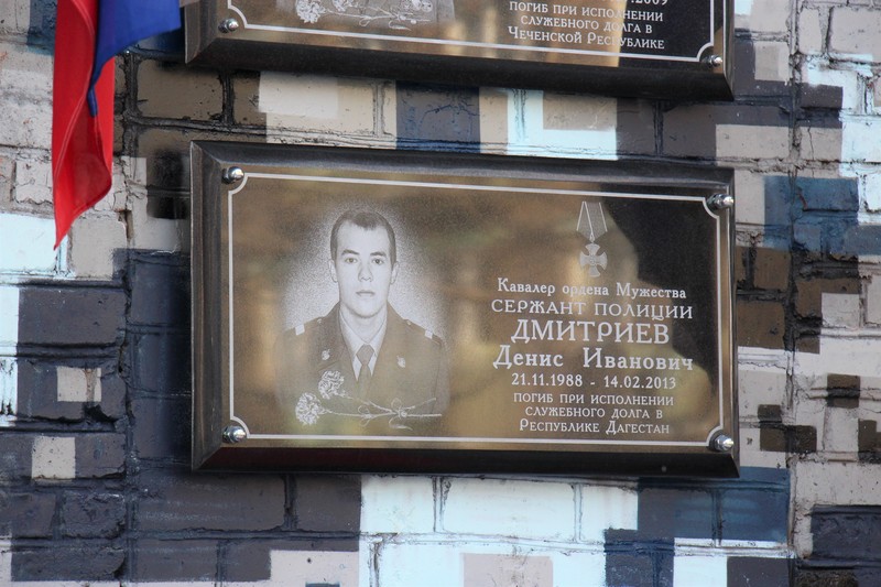 14 февраля 2013 года на въезде в город Хасавюрт на посту ДПС дежурным нарядом, в составе которого был сержант полиции Денис Дмитриев, для проверки документов была остановлена автомашина. За рулем оказался террорист-смертник, который привел в действие взрывное устройство. От тяжелого ранения, несовместимого с жизнью, Денис Дмитриев погиб.
