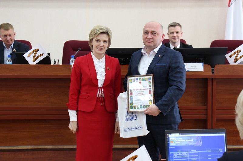 За помощь в доставке помощи в зону СВО Почетной грамотой общественной организации «Офицеры России» был награжден депутат городской Думы Павел Филимонов