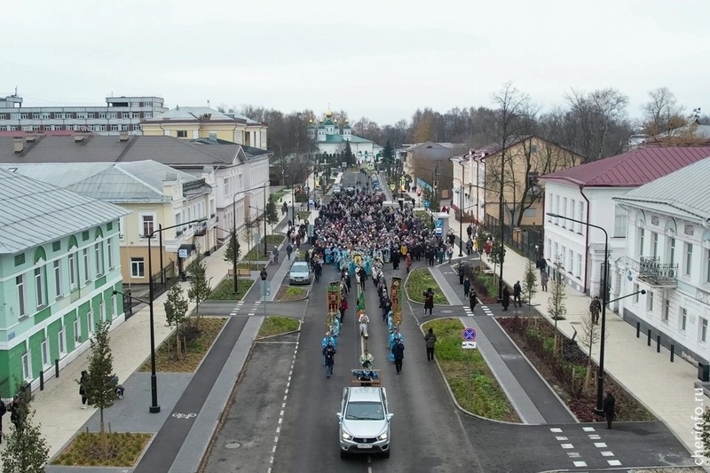 Крестный ход в честь казанской иконы Божией Матери начался в 11 часов от Воскресенского собора. Верующие прошли по обновленному Советскому проспекту до Красноармейской площади. Священники окропили святой водой улицу и дома.