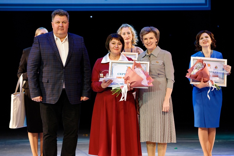 Глава города Маргарита Гусева и мэр Вадим Германов вручили победителям денежные сертификаты и дипломы.