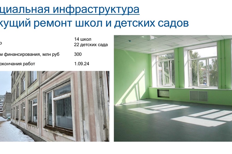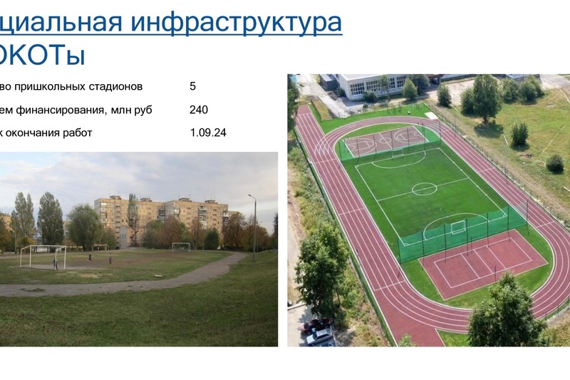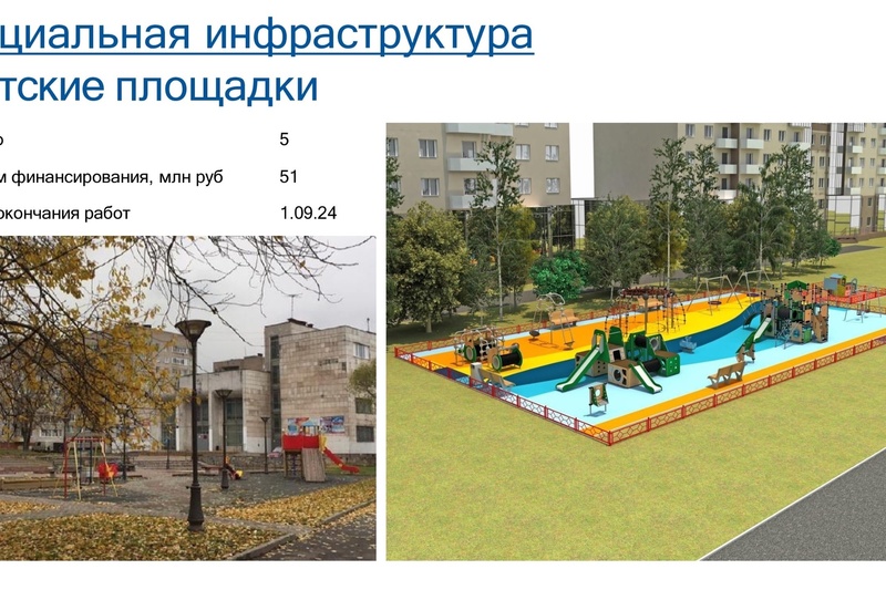 Жителей города ждет новый спортивный комплекс у Ледового дворца, пять новых школьных стадионов, Октябрьская набережная, капитальный и текущий ремонт образовательных учреждений. Пять новых детских площадок придут на смену устаревшим в городских парках и скверах.