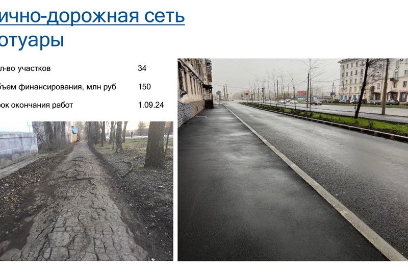 Планируется дорожный ремонт — почти 13 километров Северного шоссе (от Ясной Поляны в сторону промпредприятий), ремонт тротуаров и реконструкция ключевых перекрестков.