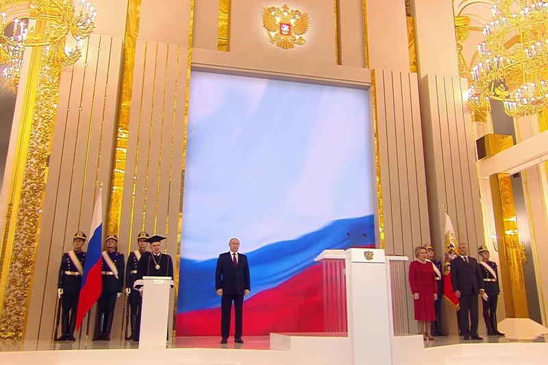 Вступая на пост президента, глава государства принес присягу народу России. Президент подчеркнул, что выбор россиян подтвердил решимость непреклонно отстаивать свободу и национальные интересы РФ.