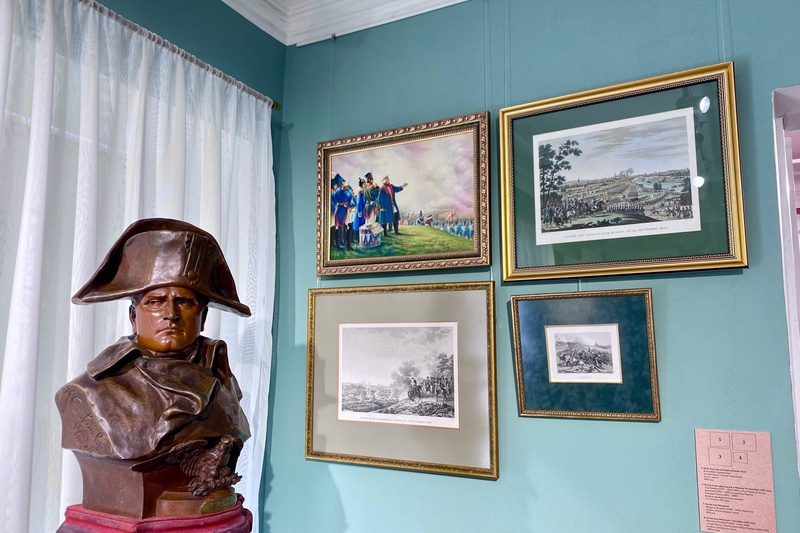 Торжественное открытие выставки прошло в доме-музее Верещагиных. Депутаты городской Думы ознакомились с картинами на тему Бородинского сражения, игрушечными пушками сына Наполеона и слепком руки императора.
