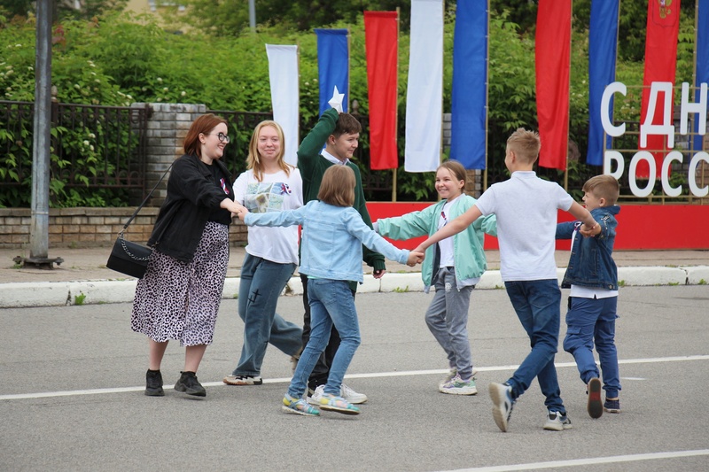 Сегодня на площади Металлургов состоялось мероприятие, посвящённое государственному празднику Дню России. В нём приняли участие 13 команд пришкольных летних лагерей.