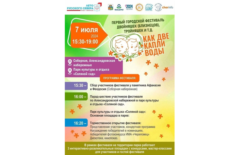 Первый городской фестиваль близнецов, двойняшек и тройняшек «Как две капли воды» пройдет в Череповце