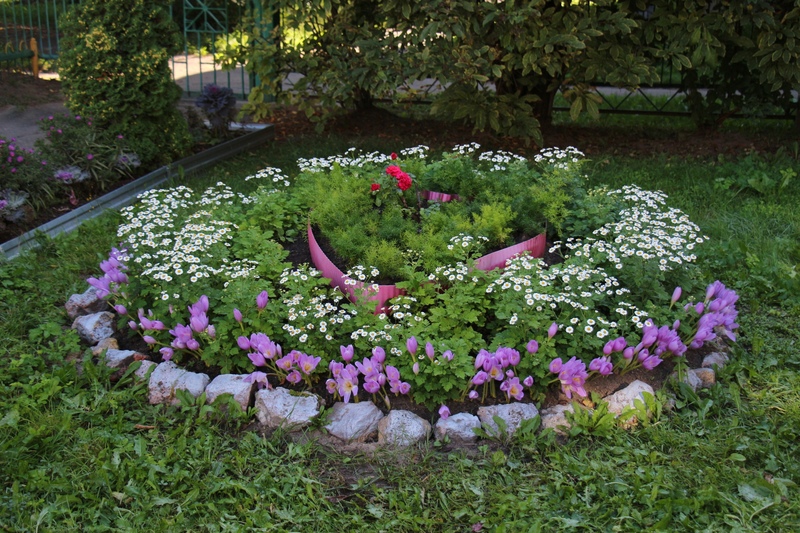 — Наша клумба, как символ рождения любви, украшает семейную беседку. С чего начинается любовь? Она зарождается с нежности, её символизирует крокус. Дальше все переходит в нежные чувства — это ромашка. Любовь символизирует — роза, — отметили воспитатели.