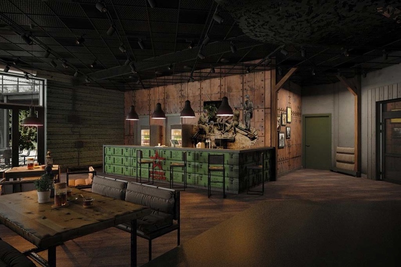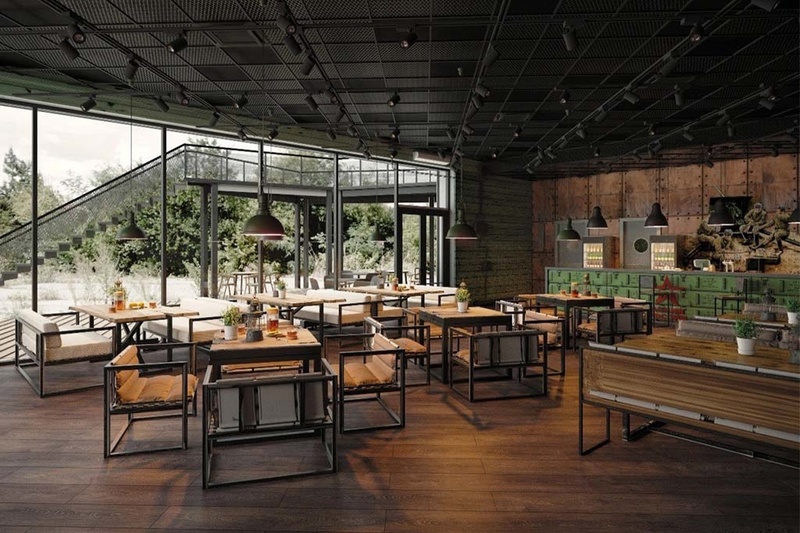 Заведение рассчитано на 50 мест и будет расположено в нижней части парка. Сам дизайн кафе выполнят в военной тематике, внутри установят тир для посетителей.