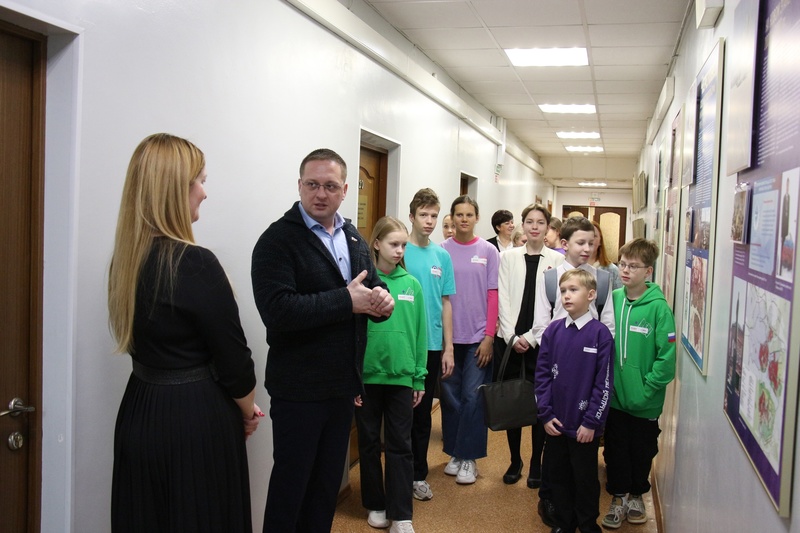 Для ребят также был подготовлен сюрприз — экскурсия по зданию мэрии. Николай Владимирович рассказал ученикам об истории возникновения города и системе местного самоуправления. Ребятам удалось заглянуть в кабинеты сотрудников аппарата городской Думы и в совещательные залы, а также пройтись по коридорам здания и побывать в приёмной мэра.