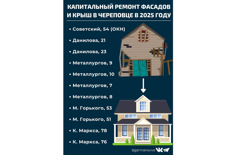 — Капремонты этого года станут продолжением программы, стартовавшей в 2024 году. Тогда в Череповце обновились 10 исторических зданий. Георгий Филимонов поручил выделить на это 89 миллионов рублей, — поделился мэр города Вадим Германов.