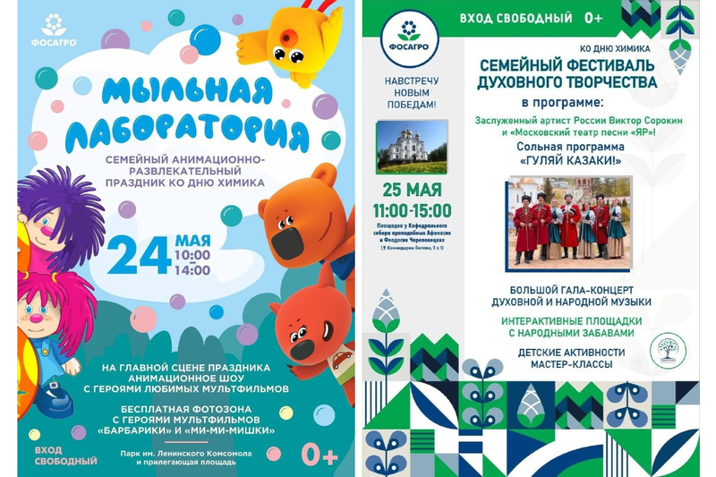 24 мая с 10:00 до 14:00 семейный анимационно-развлекательный праздник «Мыльная лаборатория» пройдет в парке им. Ленинского комсомола. А площадь Химиков вновь станет главной концертной площадкой города;