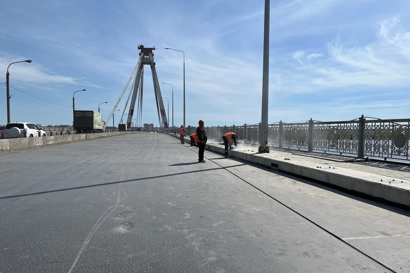 На Октябрьском мосту работы ведутся в соответствии с планом. Параллельно с ремонтом дорожного полотна специалисты занимаются восстановлением пролётов и основания. В данный момент специалисты занимаются гидроизоляцией дорожного покрытия. Вторая часть работ проходит под мостом, где осуществляется ремонт бетонных конструкций.