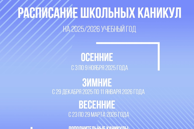 Кроме того, предусмотрены дополнительные каникулы для первоклассников в период с 16 по 22 февраля 2026 года.
