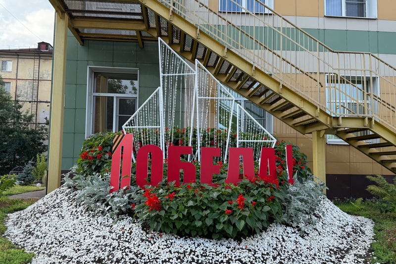Уже 11 лет сотрудники детского сада № 37 разбивают клумбы на разные темы. В этом году они решили посвятить ее 80-летию Великой Победы. Для композиции выбрали всего два вида цветов — сальвию и цинерарию, которые создают красно-белый контраст. Дополняют ее флаги, напоминающие вечный огонь, и слово «Победа», украшенное георгиевской ленточкой.