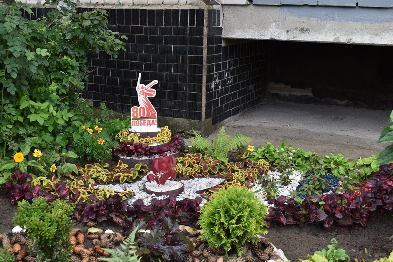 Инна Анатольевна, жительница дома на Набережной, 39, уже 11 лет ухаживает за цветами во дворе. Сейчас ее «живой» уголок насчитывает более 60 видов растений. В этом году участники конкурса почтили память наших дедов и прадедов, поэтому во дворе появилась композиция в честь 80-летия Победы.