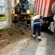 Рабочие уже приступили к демонтажу старого покрытия. По проекту на этом участке уложат два слоя нового асфальта, частично обновят тротуары и спуски, а также заменят бордюры.