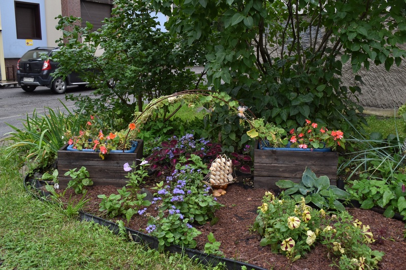 — Идея была такой: ребята создают рисунки, как они видят наши клумбы, а затем по их эскизам создаются арт-объекты. Каждая композиция символизирует дом, например, здесь в вулкане живут божьи коровки. Мы всё делали своими руками, — поделились сотрудники центра.