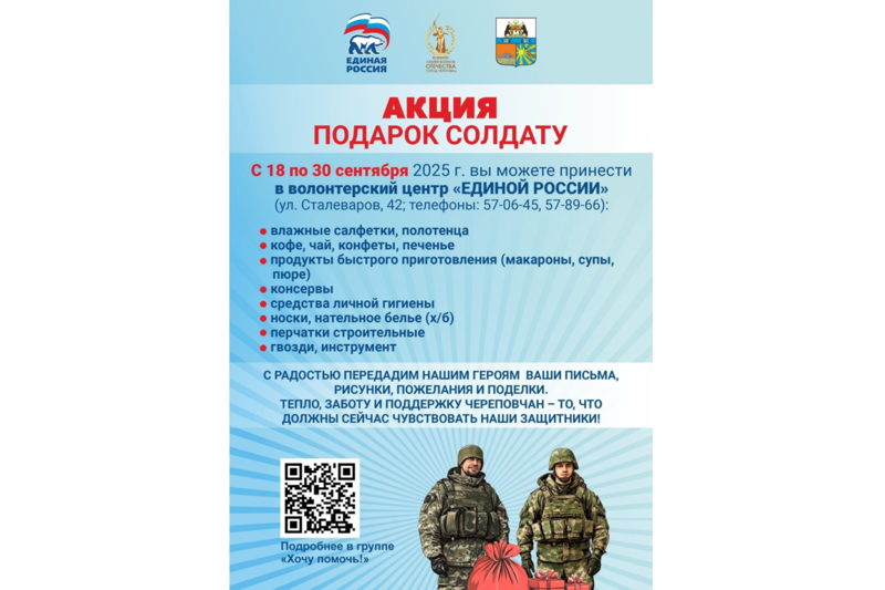 Акция «Подарок солдату» продолжается. Приглашаем вас принять участие и помочь землякам на передовой.
