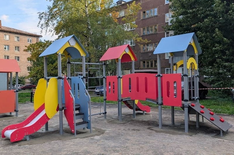 Также завершена реконструкция детской площадки на улице Командарма Белова, 1. Раньше во дворе стоял старый турник, качели и песочница.