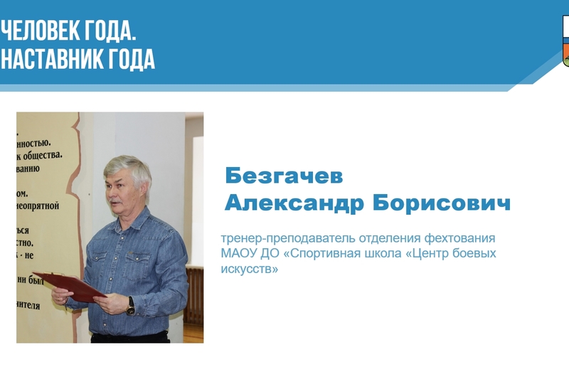 «Наставник года» — тренер-преподаватель отделения фехтования Центра боевых искусств Безгачев Александр Борисович за высокий уровень организации учебно-тренировочного процесса и сохранение традиций наставничества.