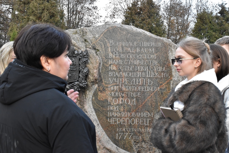 Встреча началась у памятного знака в честь основания города, затем студенты вместе с народным избранником отправились по коридорам административного здания. Так, молодые люди смогли своими глазами увидеть кабинеты, где принимаются важные решения, и лично познакомиться с исполняющим полномочия главы Череповца Ильей Ивашовым.