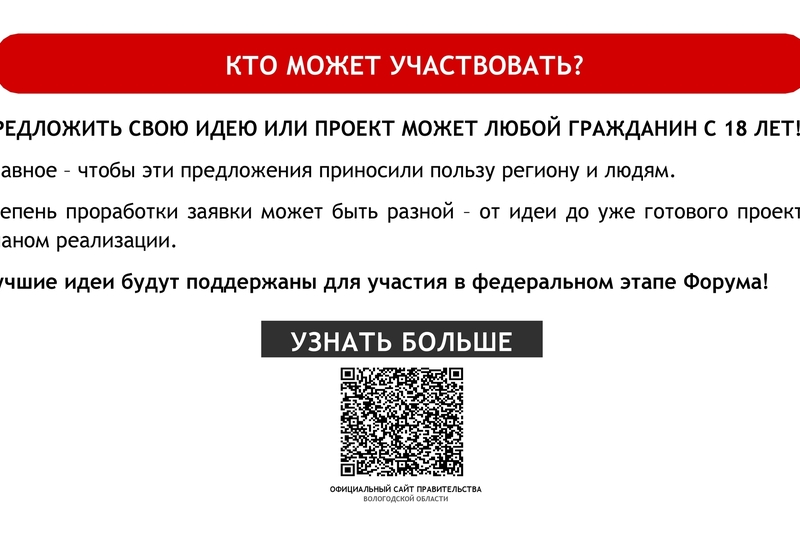 Стать участником может любой гражданин с 18 лет. Для этого нужно подать заявку до 23 января через «Портал государственных и муниципальных услуг Вологодской области» по ссылке: gosuslugi35.ru/service_ca….