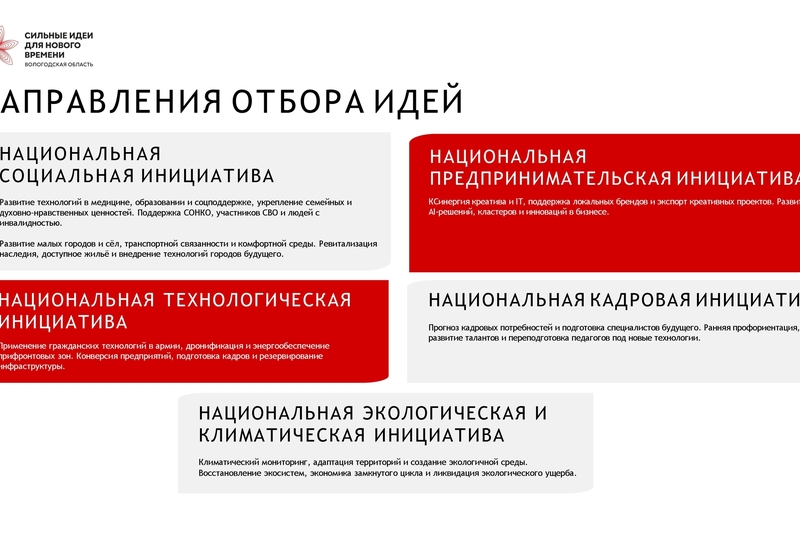 — ежегодный форум, который уже начал сбор интересных идей развития города, области или страны по пяти направлениям. Главные цели: