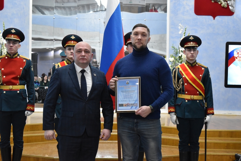 Вчера во Дворце металлургов состоялась церемония, приуроченная ко Дню воинской славы России. Во время мероприятия были вручены государственные награды родственникам погибших военных и участнику специальной военной операции.