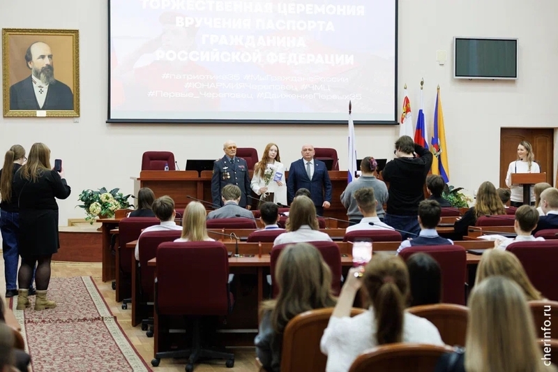 Торжественная церемония вручения паспортов проводится несколько раз в год в честь значимых праздников, в этот раз — ко Дню защитника Отечества. Организаторами мероприятия выступают мэрия Череповца, УМВД, Молодежный центр и «Движение первых».