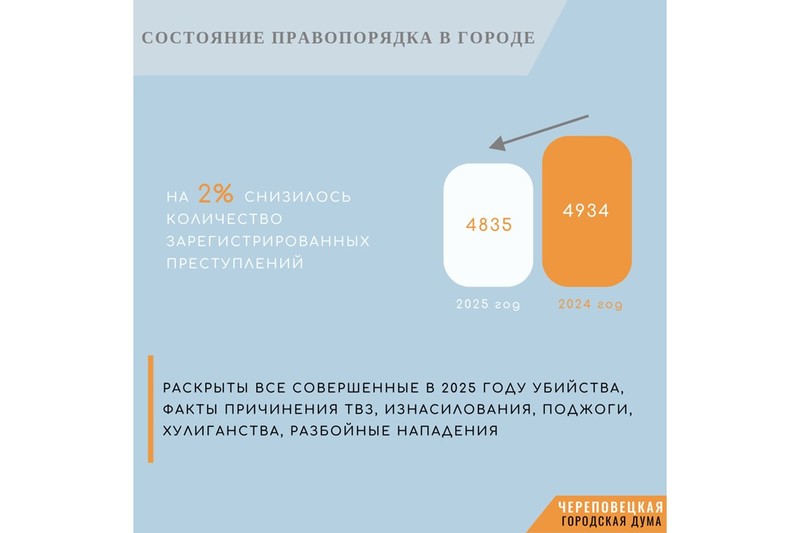 Подробно рассказал о результатах работы начальник Управления Артем Суманеев. Главные цифры о состоянии правопорядка на территории нашего города за 12 месяцев 2025 года в нашей инфографике.