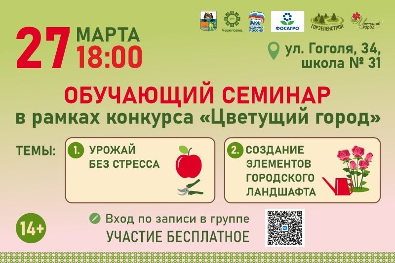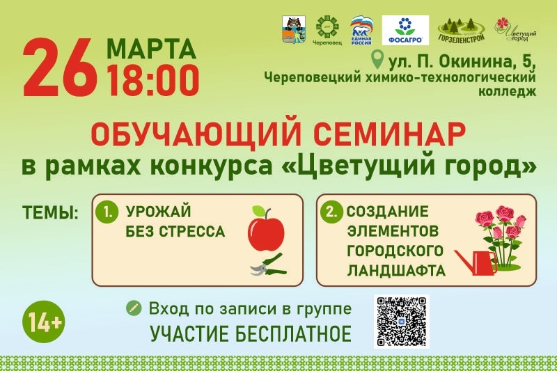 Стать участником и узнать ценную информацию накануне старта дачного сезона и городского конкурса «Цветущий город» просто! Для этого нужно зарегистрироваться по ссылке: vk.com/app5619682_−39816558 или отсканировать QR-код на афише. Присоединяйтесь!